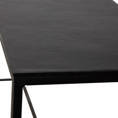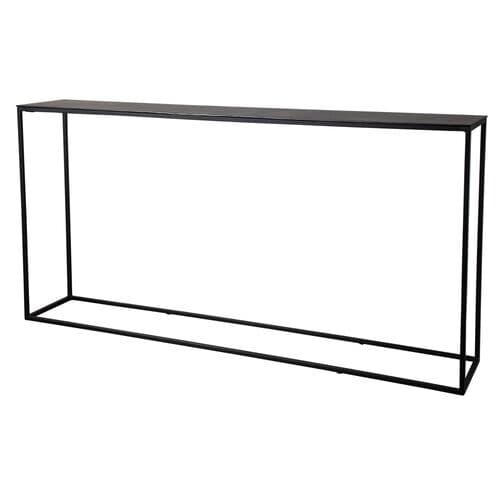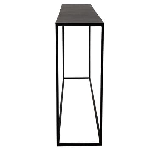 Embrace the allure of industrial elegance with this console table, a masterpiece of simplistic design and timeless charm. Crafted with an aged black iron frame, it exudes strength and sophistication, while the cast textured aluminum slab top, finished in a plated antique bronze, adds a touch of vintage romance. This console table is not just a piece of furniture; it's a statement of style, a testament to the beauty of understated luxury. Let it grace your living space, where its presence will evoke a sense of warmth and nostalgia, inviting you to linger and admire its exquisite craftsmanship.