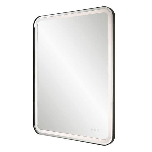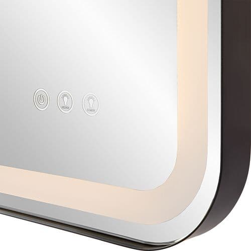 Embrace the allure of modern elegance with this exquisitely versatile mirror, a masterpiece of design that transcends mere functionality. Its integrated LED lighting casts a gentle glow through the frosted strip, creating a mesmerizing dance of light and shadow on the polished edges. The mirror's metal frame, gracefully offset from the wall, allows a soft halo of ambient light to envelop your space, setting the perfect mood for any occasion. With intuitive touch buttons elegantly positioned for ease of use, you can effortlessly control the on-off function, adjust the kelvin from a warm 2700k to a cool 4000k, and fine-tune the brightness to your heart's desire. The LED lights, with an impressive lifespan of 40,000 hours, promise enduring brilliance. Even in the quiet embrace of darkness, the touch screen icons remain softly illuminated, guiding you with ease. This mirror is not just a reflection of your visage, but a reflection of your impeccable taste.