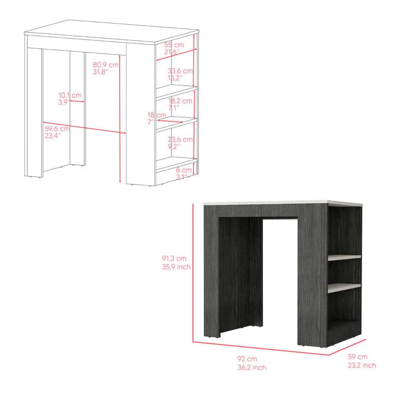 Kitchen Island Doyle, Kitchen, Smoky Oak / Ibiza Marble Color Finish