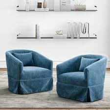 Set of two compact swivel barrel accent chairs in linen-style fabric, each including a matching lumbar pillow. Chairs feature a sturdy wood frame with a 360-degree steel swivel base, supportive cushioning, and an approximate 300 lb weight capacity. Simple assembly (attach base) and space-saving design suitable for living rooms, bedrooms, nurseries, offices, or lounge areas. Package includes 2 chairs and 2 pillows. Features and copy aligned with Ouyessir’s set-of-2 product listings on major retailers offering this SKU family.