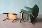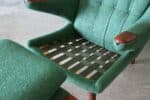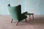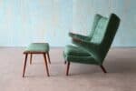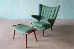 Vintage 1950s Hans J. Wegner Papa Bear Chair & Ottoman – Teak & Green Bouclé AP19 RARE