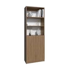 2-Door Bookcase with Upper Shelves - Natural Wood
