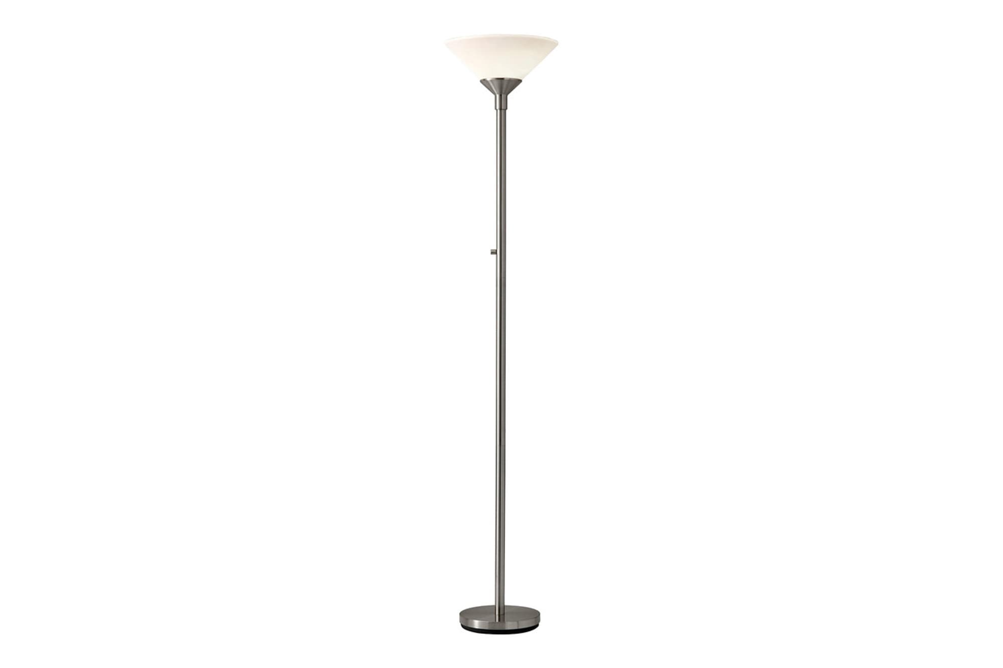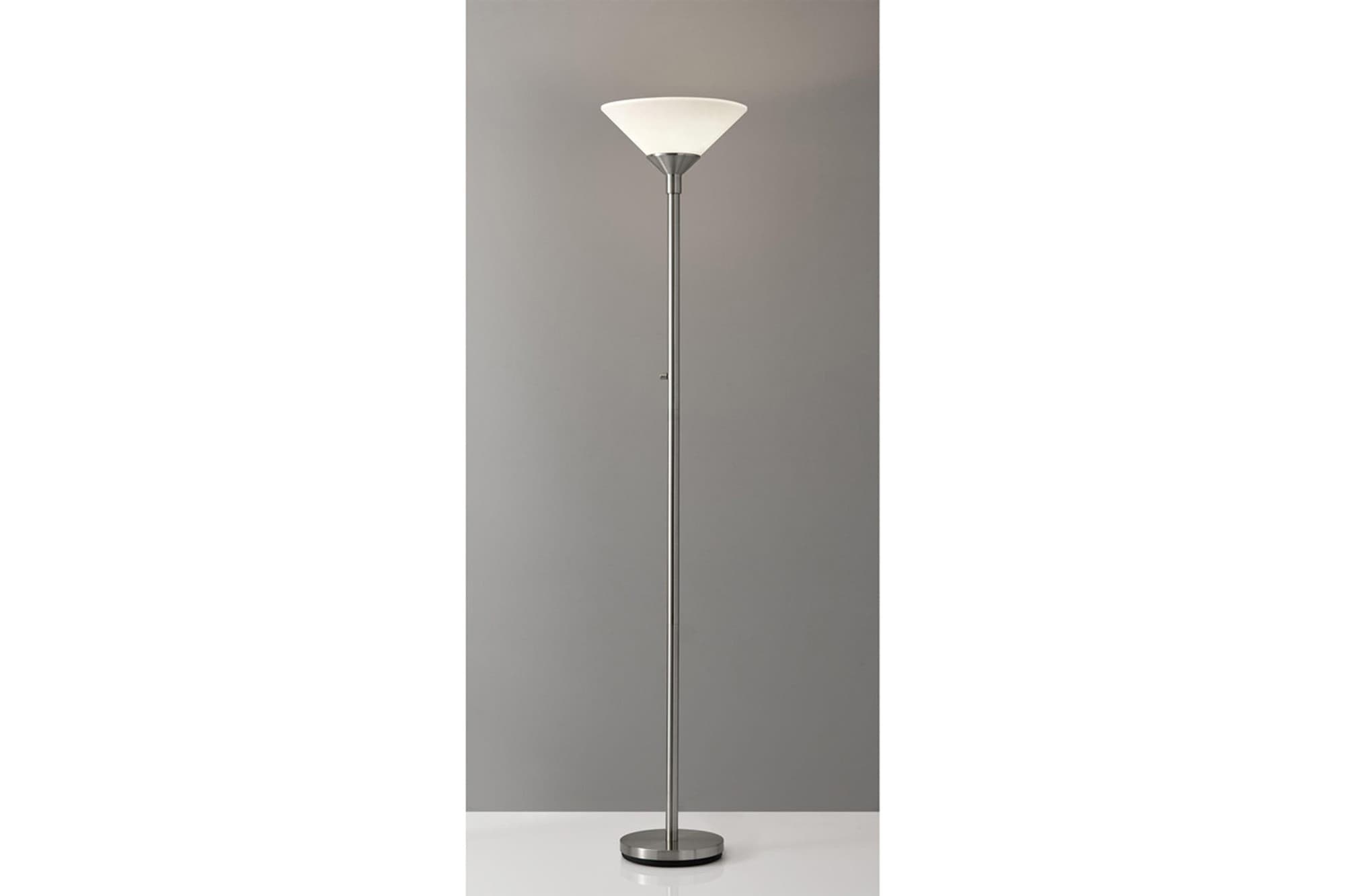 With a striking minimalist design, this lamp can be seamlessly incorporated into any dcor. Sleek and ultra modern, the Aries Torchiere is available in your choice of color to best complement your living room, bedroom, or office space. This torchiere lamp stands at 73" high and will provide 18% more ambient room light with 35% more efficiency than a standard 300 Watt halogen floor lamp.