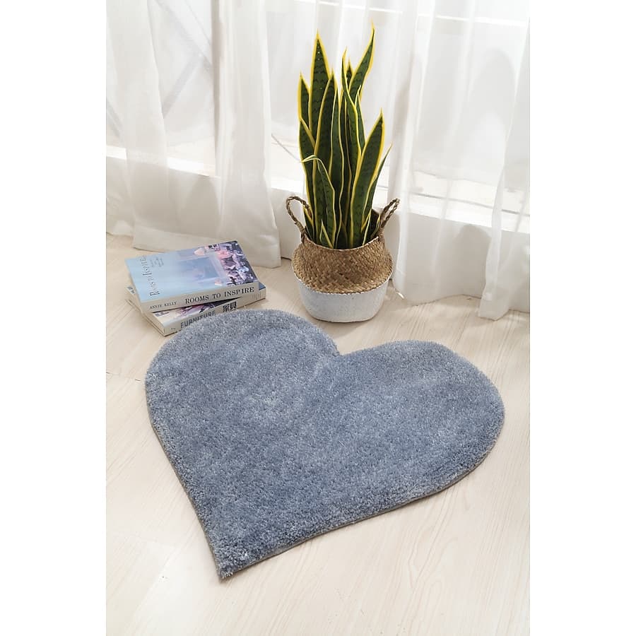 The Hearts Shag collection features hand-tufted area rugs constructed from 100% polyester fiber. These area rugs are tufted in a heart shape and come in a variety of colors. Hand-woven polyester shag with a cotton backing. Actual Size: 24 inches wide x 24 inches long, Heart shape.
