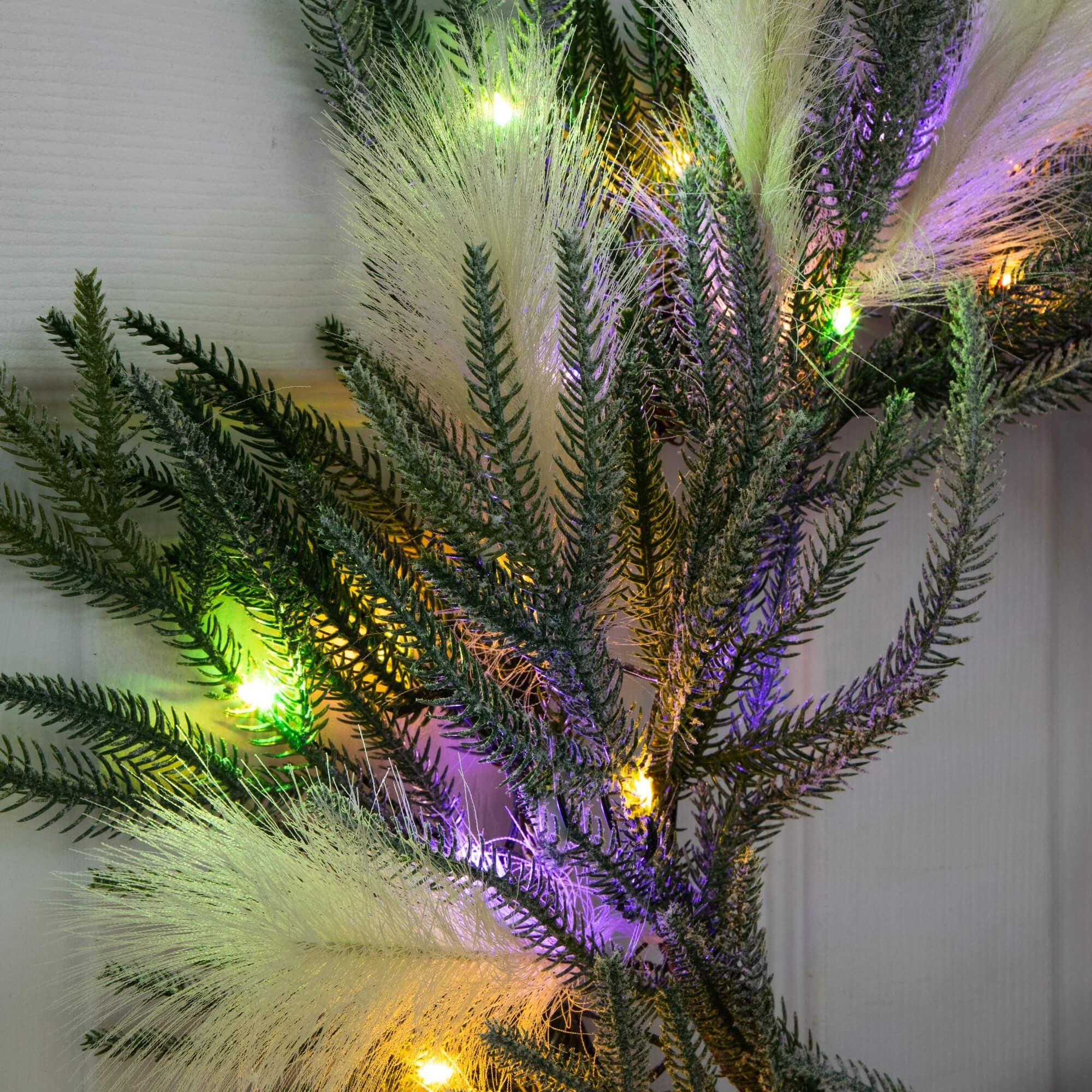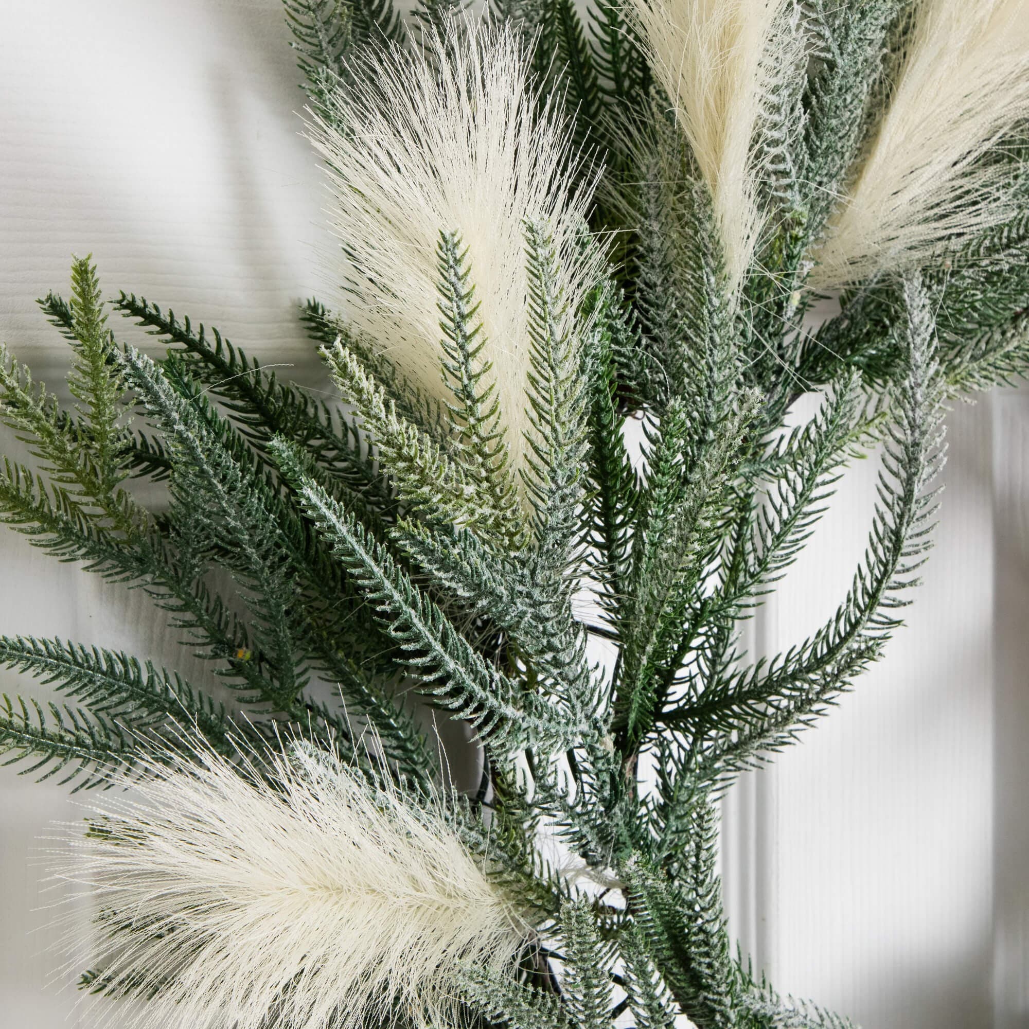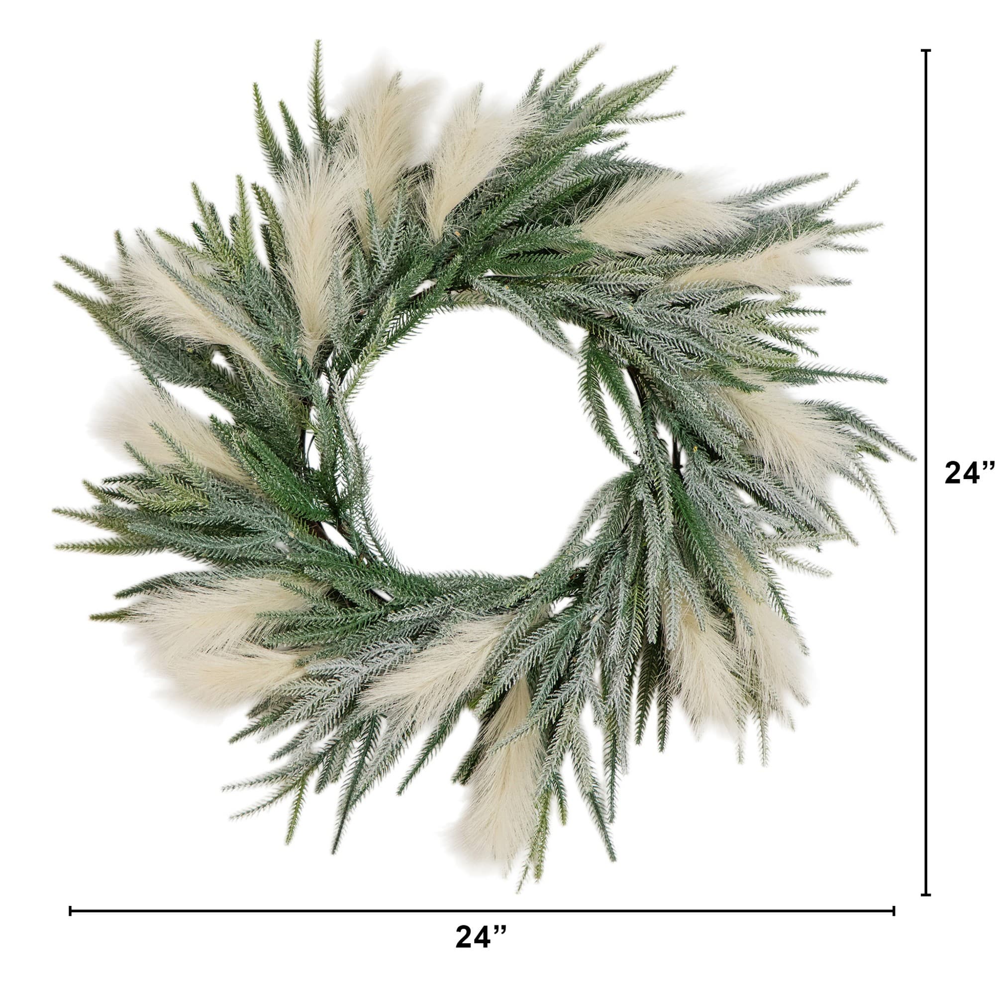Add a playful twist to holiday traditions with this artificial balsam fir pampas wreath. This unique design combines realistic fir branches with soft, fluffy pampas grass, all illuminated by 50 multicolor LED lights that create a vibrant, festive glow. This piece offers a fresh take on holiday decor with a trendy foliage that brings warmth and cheer wherever displayed. The multicolored lights add a playful energy. With a diameter of 24-In, hang this no-fuss decoration in any space that needs a holiday refresh. Hang on a neutral wall and watcha as it shines, or display as a centerpiece in a dining table.
