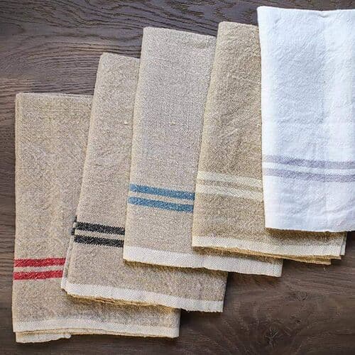 Because khadi linen fabric is entirely handmade from the spinning to weaving stage, it has a natural, earthy look and feeling. At the same time, it’s understated and chic. These khadi runners, napkins and handkerchiefs are perfect for outdoor dining.
