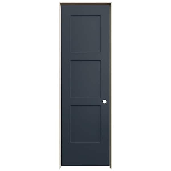 Prehung composite MDF interior door (Birkdale profile) with denim stain finish. Left-hand smooth, hollow-core molded composite construction. Includes frame for easier installation. Lightweight, cost effective door that complements many styles. Actual unit size listed as 25-9/16 in. W x 81-11/16 in. H.