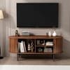 GDFStudio Fennik Mid-Century Modern Wooden TV Stand with Sliding Door and Storage Compartments