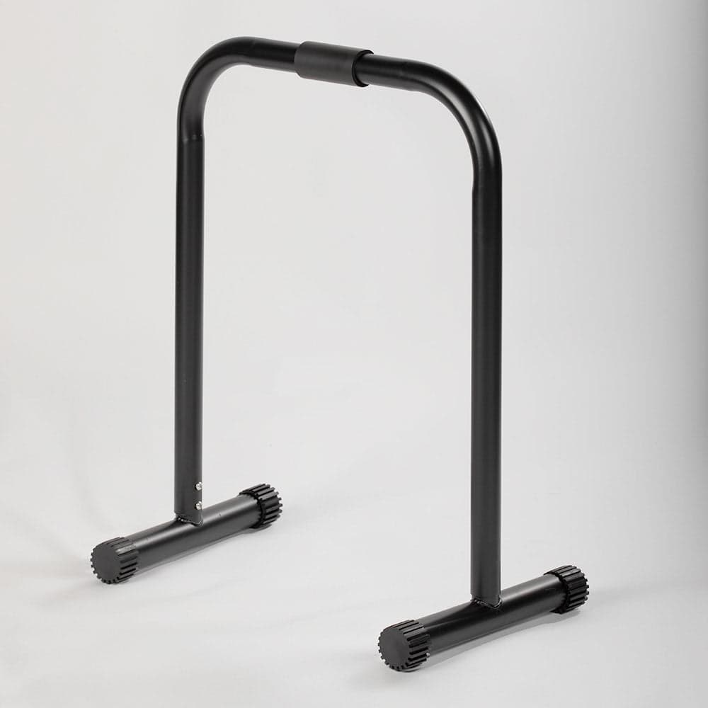 Scratch and Dent Deal — item may have cosmetic damage and/or missing hardware. Get a full calisthenics workout with this versatile dip station. These parallel bars are perfect for working your arms, chest, legs, back and core using your own body weight as resistance and are rated for 300 lb. Each bar adjusts up to 35" and can be set parallel or staggered. Padded grips and rubber feet increase control and stability. (Scratch and Dent items are not eligible for returns or warranty claims.)