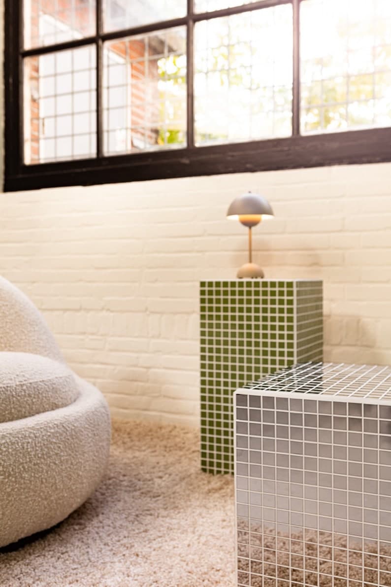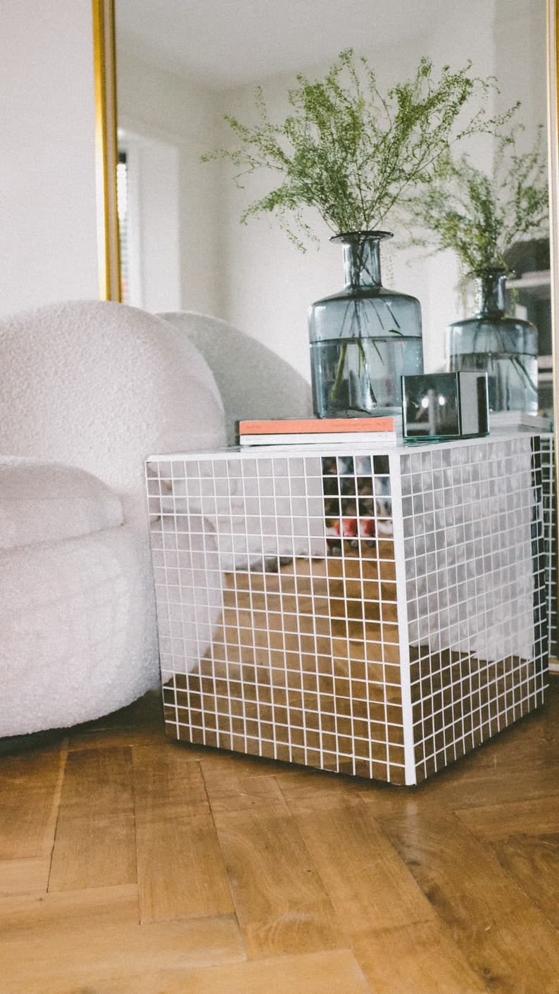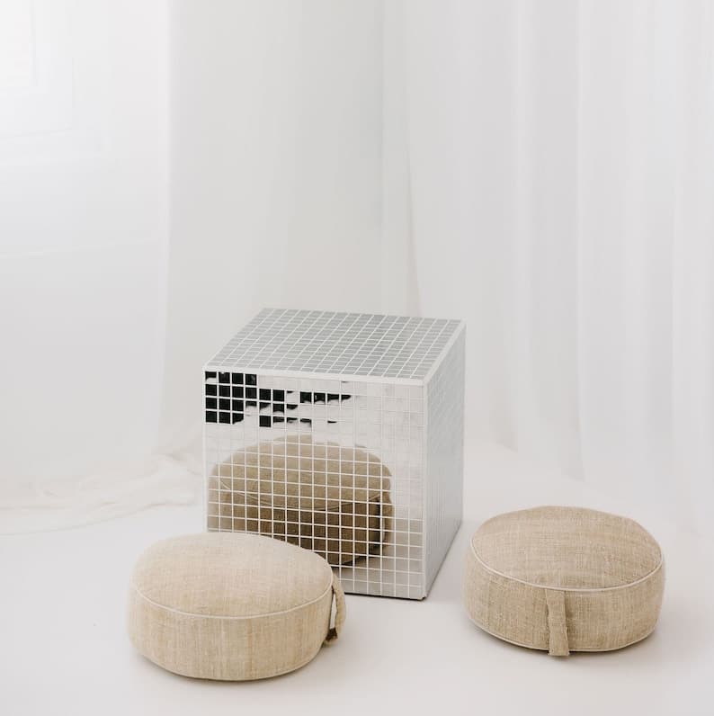 Amazing side table that fits in perfectly with your aesthetic! Ready for that extraordinary design piece in your home? Done with that bored little corner or in need of an amazing side table next to your armchair or sofa? Search no more! Our Disco Cube gives you that artsy, contemporary & design feeling that makes you fall in love with every single day. Our Disco Cube is a tiled side table covered in mirrored little tiles with a white smooth grout. Place it where it catches the sun for beautiful reflections. Handmade with eye for every single detail & handled with great care, our Disco Cube is our most stunning piece in our collection.