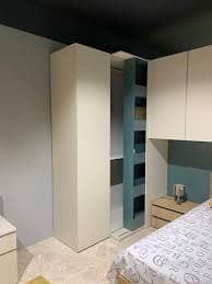 Camera completa Mistral composta da ponte, cabina ad angolo con libreria scorrevole, letto, comodino e composizione scrivania con accessori, in pronta consegna. Materiale: laminato. Marca: Camere da letto Mistral. Modello: Ponte. Stile: moderne.
