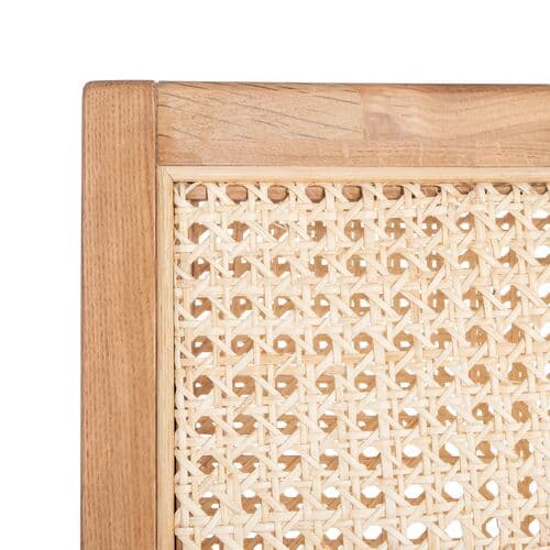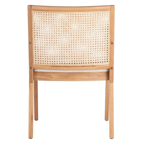 Create a modern and inviting setting with our dining chair. This modern and neatly proportioned chair is updated with a beautiful woven back, showcasing a rush weave pattern to attain simple yet striking graphics. The natural textures are framed with a matte black ash wood framework. Our dining chair effortlessly combines modern elegance with the beauty of organic textures, including a slim yet comfy cushion to elevate your dining experience.