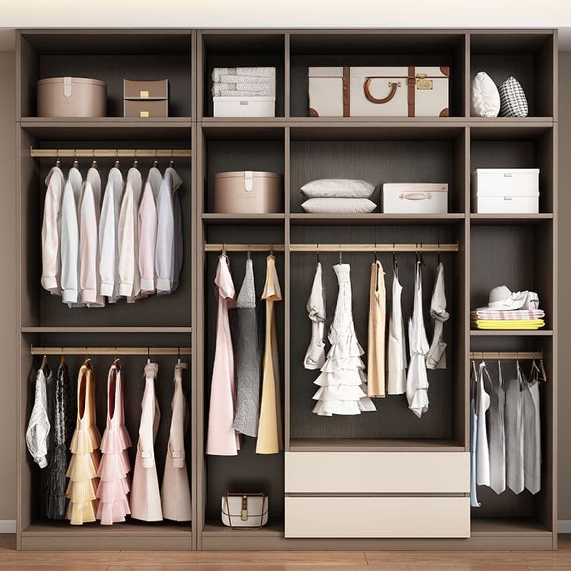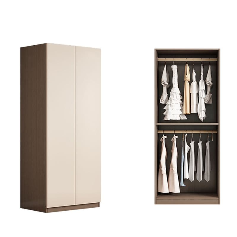 Charcoal casual engineered wood wardrobe armoire with soft-close cabinet doors, interior shelves (2 non-adjustable), and 2 clothing rods. Partial assembly required. Features: without mirror, not a corner unit, drawers not included, includes interior shelves and clothing rods, soft-close doors. Material: wood. Warranty: limited 60 days. Sizes available; this listing is for the 31.5"L x 23.5"W x 79"H size.