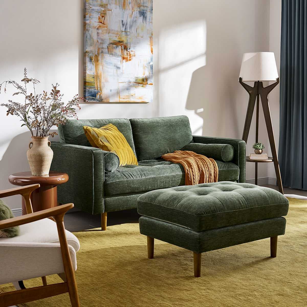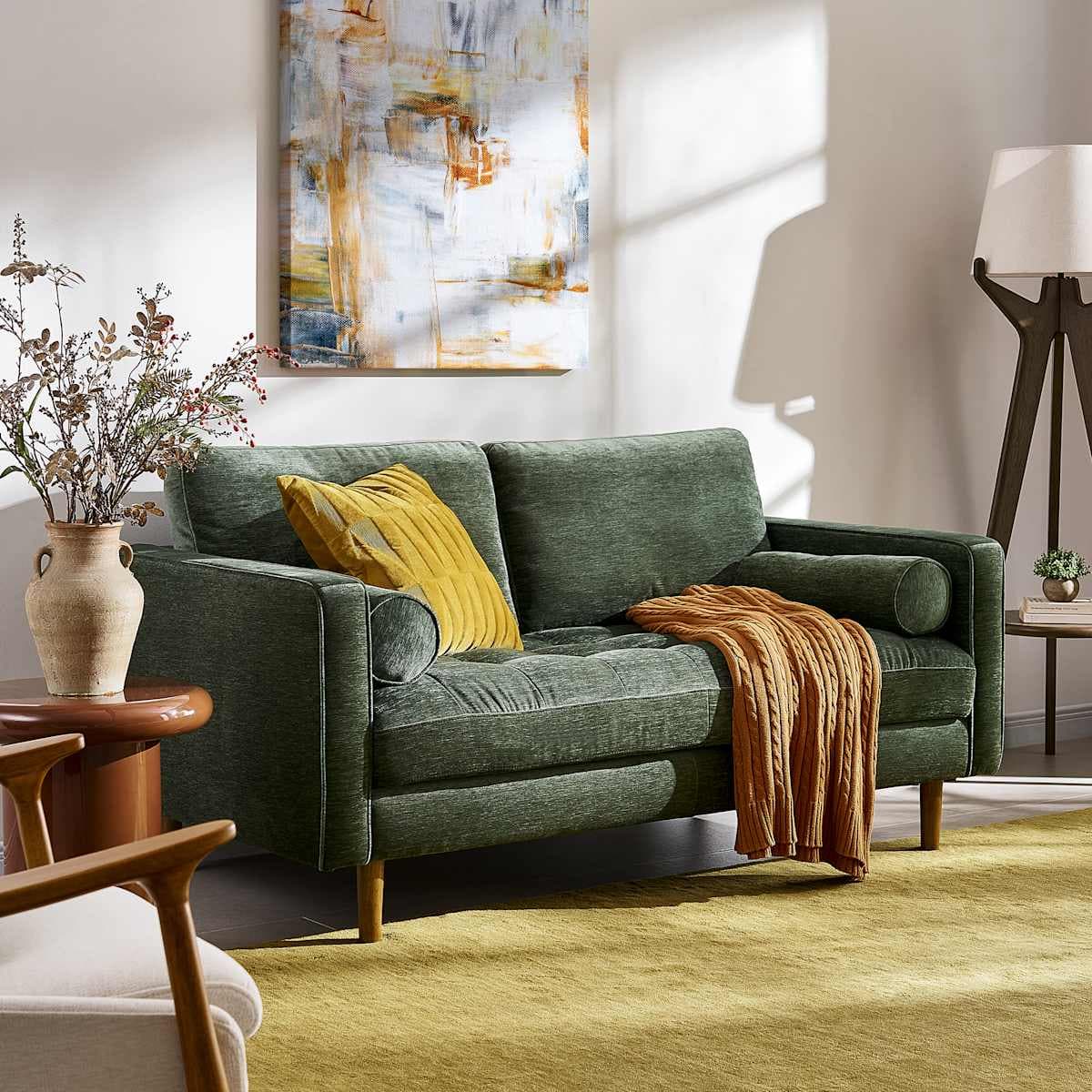 Biscuit Tufted Design 2 Seater Sofa - Teal for Living Room, Castlery Performance Fabric, Comfortable Seating