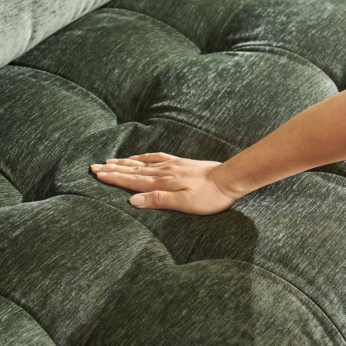 Biscuit tufting that stays firm and holds its shape, with Performance fabric that stands up to spills, Madison is built for lasting comfortâperfect for long chats or sneaking in an extra-long coffee break.