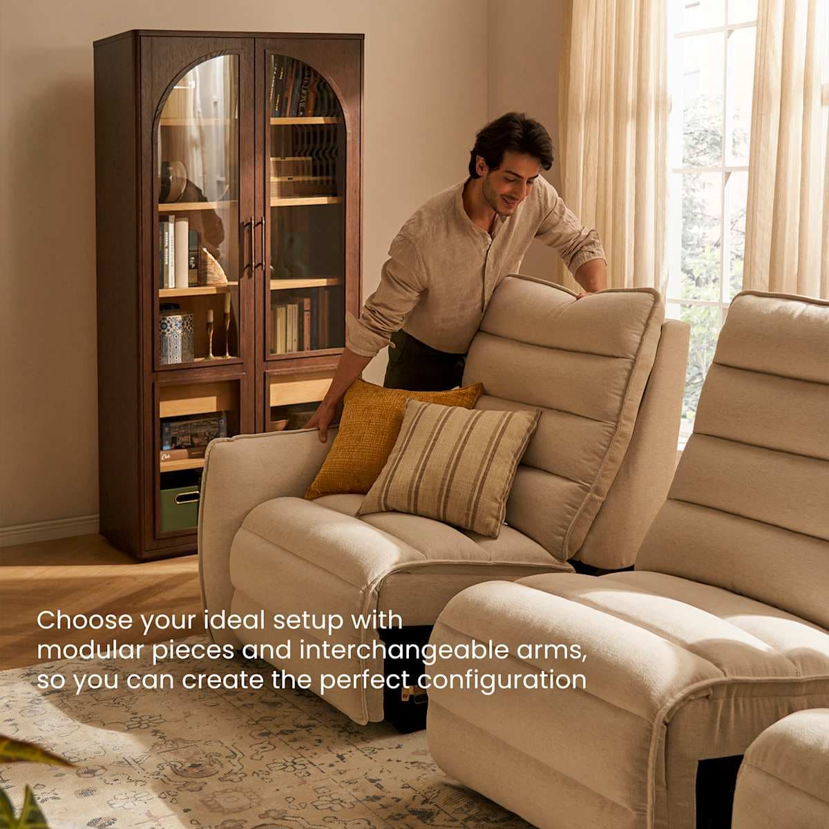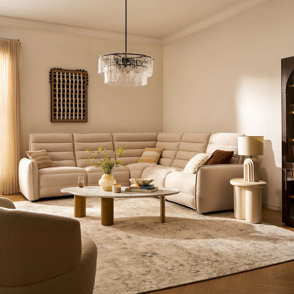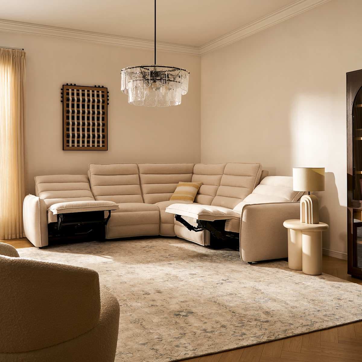 Highback, Horizontal Channel Design Motion L-Shape Sofa - Cream | Reverie by Castlery