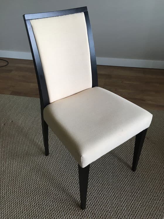 2 Stück Van Bennekom Designstühle. Schwerer Holzrahmen in dunkler Wenge-Farbe. Hellrosa Stoff in Pastelltönen. Größe H89xB45xT42xZH48cm. In sehr gutem Zustand. 100,00 € zusammen. Minimale Dellen. Keine Flecken oder Verfärbungen. Harter Sitz. Schwerer Holzrahmen.