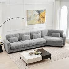 HYLEORY 154'' Sectional Sofa , Indoor Furniture Convertible Modular Corduroy Sectional Sofa for Living Room,Gray
