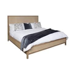Rectangle/cane panel bed featuring a framed cane panel on the headboard, footboard, and side rails. Available in multiple finishes (Rabbit, Midnight) and sizes (Queen, King). Constructed from veneer and solid woods (examples: Celtis or White Oak veneer and solids).