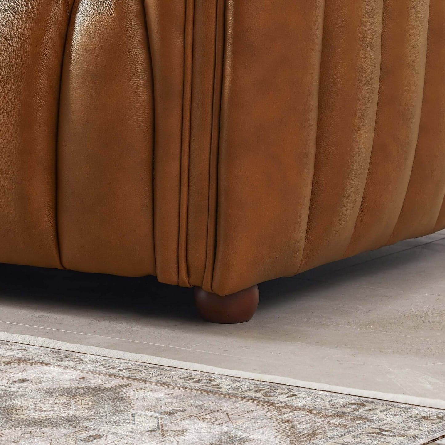 April Mid Century Modern Luxury Tight Back Tan Leather Couch