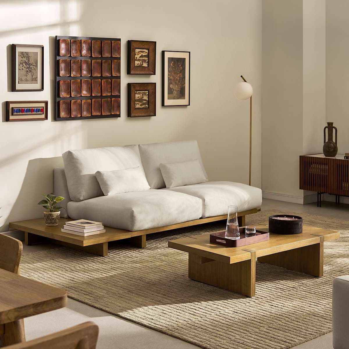 Performance Fabric 2 Seater Armless Sofa with Removable Covers and Side Table - Grey, Light Brown | Mori by Castlery