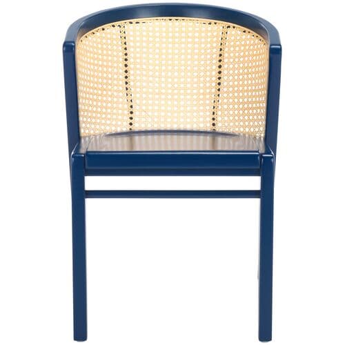 Liven up your home with the modern charm and breezy appeal of our Keylah Dining Chair. Its mid-century modern appeal is combined with rich materials to add a cozy and fashionable edge to any room. The barrel back of the chair is updated with the rich texture of rattan. Crafted in solid wood, our dining chair enlivens any space with its warm and rich textural appeal. It includes a padded seat to lend comfort and a stylishly casual air to your kitchen, dining room, or living area.