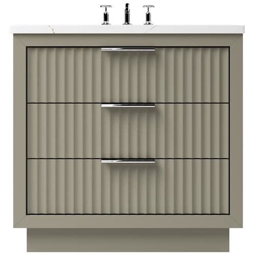 The Ashford Three-Drawer Single Bathroom Vanity is a masterpiece of contemporary design, exuding elegance with its sleek scalloped details that breathe new life into any bathroom space. This vanity is not just a piece of furniture; it's a statement of style and functionality, crafted to stand the test of time. Its freestanding design showcases a bold two-inch frame that proudly accentuates the soft-close doors and drawers, all enveloped in a luxurious satin varnish. Whether you desire a single or double configuration, the Ashford collection offers a variety of sizes to perfectly fit your space. With its versatile design, this vanity promises to be the centerpiece of your bathroom, offering both beauty and practicality in equal measure.