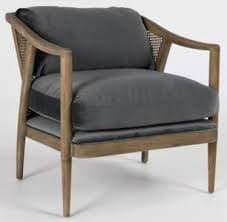 Tapered legs, rattan accent, and an angular frame give this chair a vintage charm that enhances any room. Plush polyester upholstery gleams in a stormy shade of gray while making this chair luxuriously comfortable. Also available in taupe.