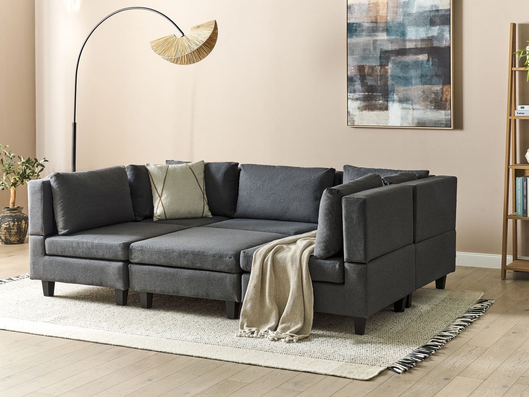 Divano modulare 5 posti tessuto grigio scuro con ottomano UNSTAD