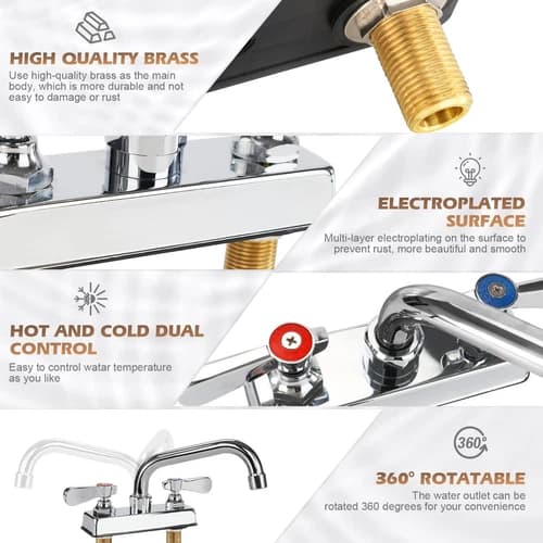 Commercial Bar Sink Faucet 4 Inch Center Deck Mount Bar Sink Faucet 2 Hole Br...