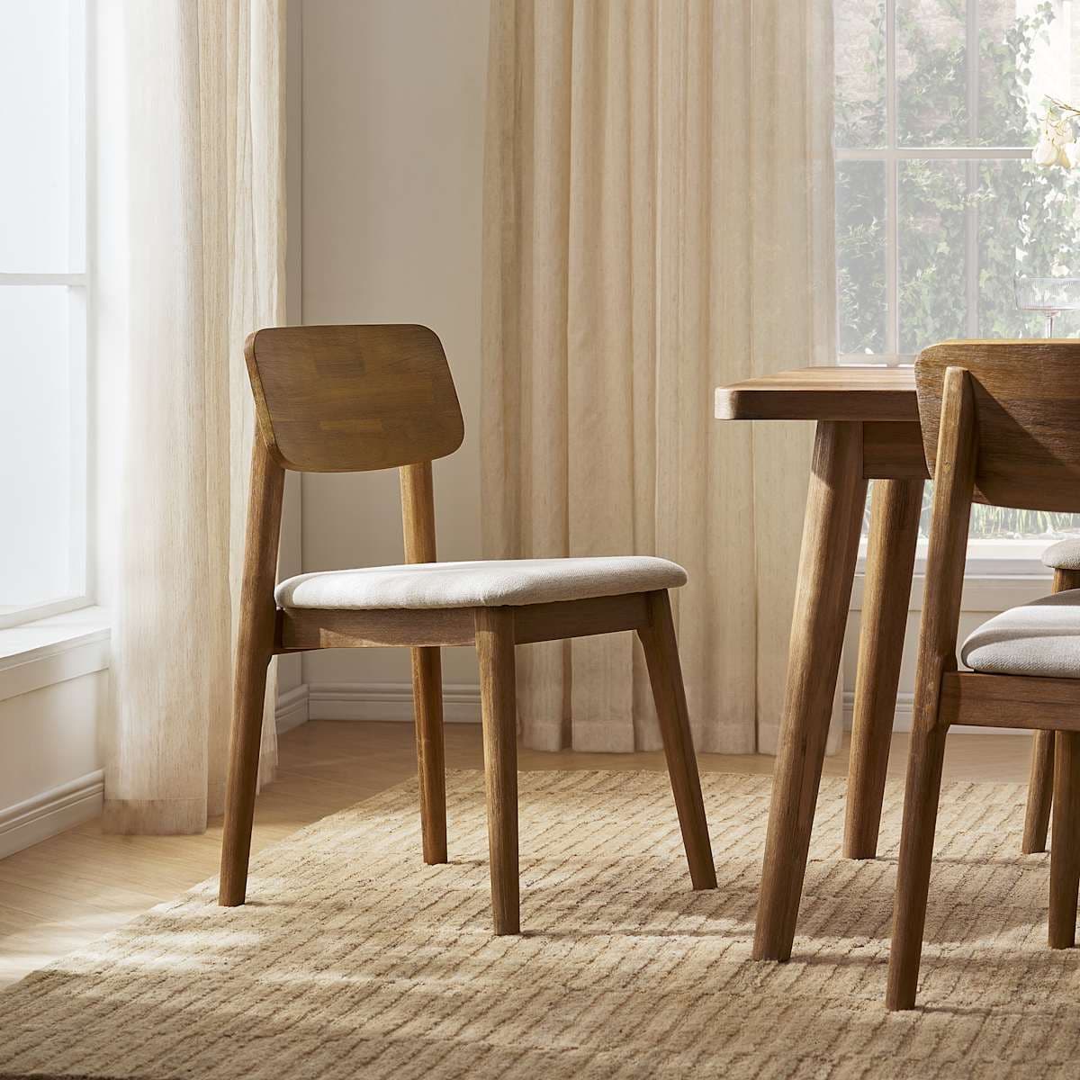 Wooden Dining Table Set with 4 Fabric Chairs - Brown, White | Seb by Castlery