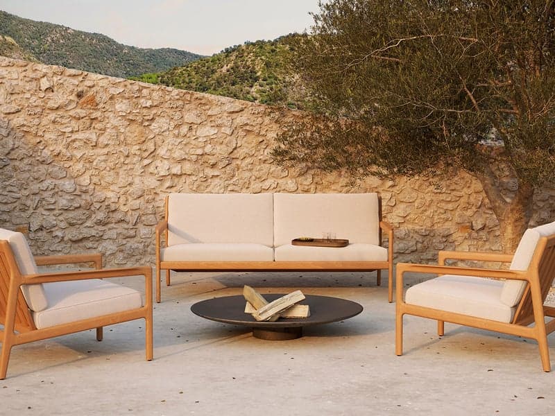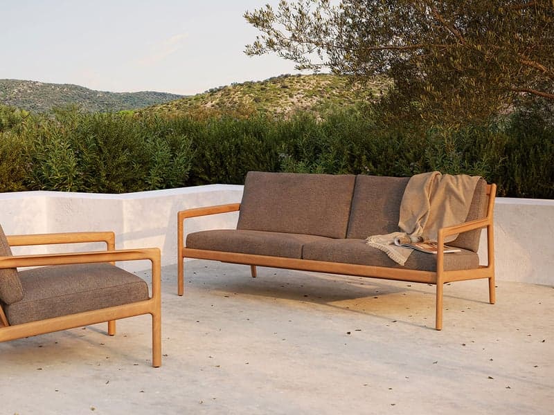 Jack, el sofá de dos plazas diseñado por Jacques Deneef para Ethnicraft, es belleza absoluta con las formas exuberantes y las curvas que representan el valor fundamental de toda la colección. Con una tapicería de tela belga y una estructura de madera de teca, cada detalle ha sido meticulosamente estudiado para garantizar el confort y la elegancia incluso en espacios exteriores. Para limpiar del polvo y de los escombros, usar regularmente un paño suave o un cepillo. Las fundas de cojín son lavables en lavadora hasta 40 °C / 104 °F. Utilizar las cubiertas de lluvia a medida elegidas para proteger los muebles de los elementos metereológicos. Asegurarse de que el artículo esté completamente seco antes de almacenarlo.