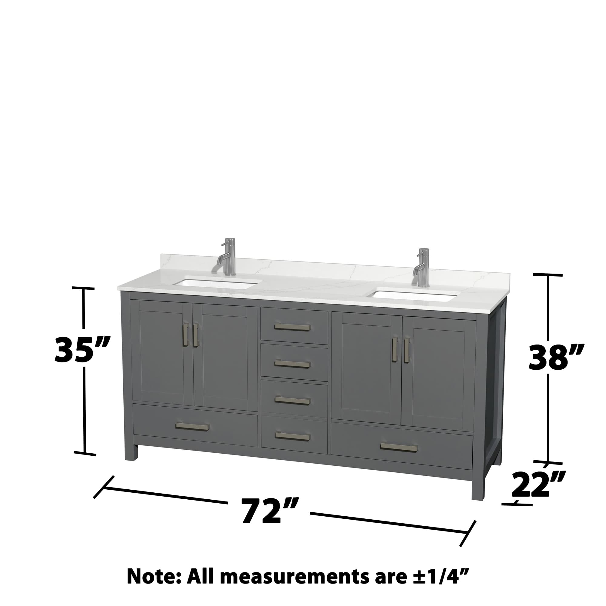 The Wyndham Collection is an entirely unique and innovative bath line. Sure to inspire imitators, the original Wyndham Collection sets new standards for design and construction.Distinctive styling and elegant lines come together to form a complete range of modern classics in the Sheffield Bathroom Vanity collection. Inspired by well established American standards and crafted without compromise, these vanities are designed to complement any decor, from traditional to minimalist modern.Available in multiple sizes and finishes.FeaturesConstructed of environmentally friendly, zero emissions solid wood, engineered to prevent warping and last a lifetime12-stage wood preparation, sanding, painting and finishing processHighly water-resistant low V.O.C. sealed finishBeautiful transitional styling that compliments any bathroomPractical Floor-Standing DesignMinimal assembly requiredDeep Doweled DrawersFully-extending under-mount soft-close drawer slidesConcealed soft-close door hingesCounter options include Giotto Quartz, White Quartz, White Carrara Marble, Carrara Cultured Marble, and White Cultured MarbleCounter includes 3" backsplashCultured and Quartz counters include one (1) reversible side-splashAvailable with Porcelain undermount sink(s)Backsplash comes in two pieces (Cut from one single piece due to high probability of breakage)Oval sink(s) available with pre-drilled 8" Widespread 3-Hole faucet mountsSquare sink(s) available with pre-drilled Single-Hole and 3-Hole faucet mountsFaucet(s) not includedMetal exterior hardware with brushed chrome finishFour (4) functional doorsFive (5) functional drawersPlenty of storage space and counter spaceQuartz is created in batches and slight variations from batch to batch are possible. We cannot guarantee an exact match to your existing counter.Variations in the shading and grain of our natural stone products enhance the individuality of your vanity and ensure that it will be truly uniqueProduct GuidesHandling Your CounterVanity Installation24" Medicine Cabinet InstallationProduct Spec SheetsQuartz Counter Vanity (Single-Hole)Quartz Counter Vanity (3-Hole)Carrara Marble/Cultured Marble Counter VanityAccessory Spec Sheets24" Mirror70" MirrorMedicine CabinetLinen TowerQuartz Counter (Single-Hole)Quartz Counter (3-Hole)Cultured Marble Counter (Single-Hole)Cultured Marble Counter (3-Hole)Sheffield 72" Bathroom Vanity, Drag to Rotate or Open ⚠WARNING: This product can expose you to chemicals, including wood dust and methanol, which are known to the State of California to cause cancer, birth defects or other reproductive harm. For more information, go to: www.P65Warnings.ca.gov.
