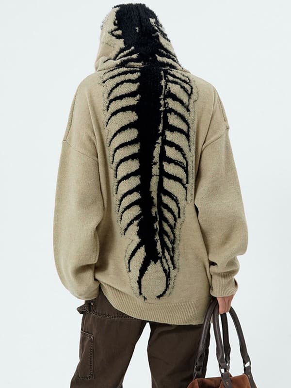 Style: Casual/Street/Sweet/Preppy/Vintage/Y2K. Fabric Content: Polyester Blend. Fit Type: Loose. Neckline: Hooded. Sleeve Length: Long Sleeve. Unique and edgy back skull jacquard design for a bold and statement-making look. Made from a comfortable and durable polyester blend fabric for all-day wear. Loose fit style for a relaxed and comfortable fit, perfect for casual occasions. Hooded design adds a touch of coziness and comfort to the overall look. Long sleeves make it suitable for cooler weather, while the statement-making design adds a trendy and fashionable touch to the pullover.