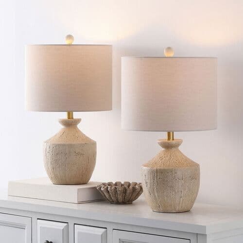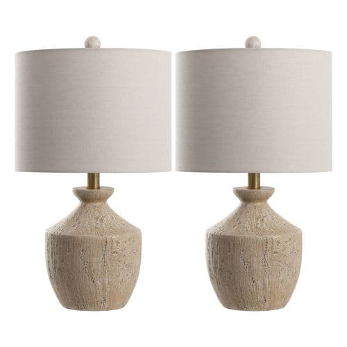 Introducing the Mavie resin table lamp set of two. Perfect for adding a touch of elegance to any room, this lamp combines a beautifully crafted resin body with a soft fabric shade, offering both functionality and style. The design complements a variety of decor themes, making it a versatile addition to your home. Each lamp in the set stands at 21 inches, making them an ideal size for bedside tables, desks, or living room end tables. The resin material provides a sturdy, attractive base that seamlessly blends with the delicate fabric shade to create a warm and inviting ambiance. Whether you are looking to revamp your bedroom or enhance your living space, the Mavie table lamp set offers a stylish lighting solution. Its understated design ensures it fits effortlessly into both modern and traditional settings. Illuminate your home with the soft, serene glow of these lamps, and transform your space into a Neronna of comfort and sophistication.