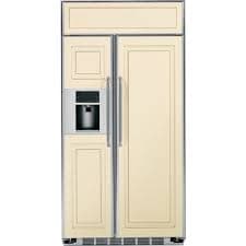 42" built-in, panel-ready side-by-side refrigerator from the GE Profile series with TwinChill evaporators, external controls with actual temperature display, quick-ice setting, adjustable door bins, wire slide-out freezer baskets, advanced water filtration (uses MWF filter), and 24.4 cu. ft. total capacity (15.6 cu. ft. fresh food / 8.8 cu. ft. freezer). Product has been discontinued on the retailer site.