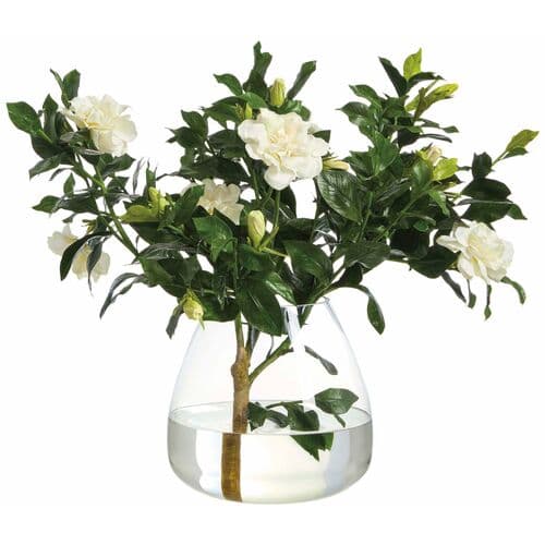 22" Gardenia Branch in Round Glass Vase - White