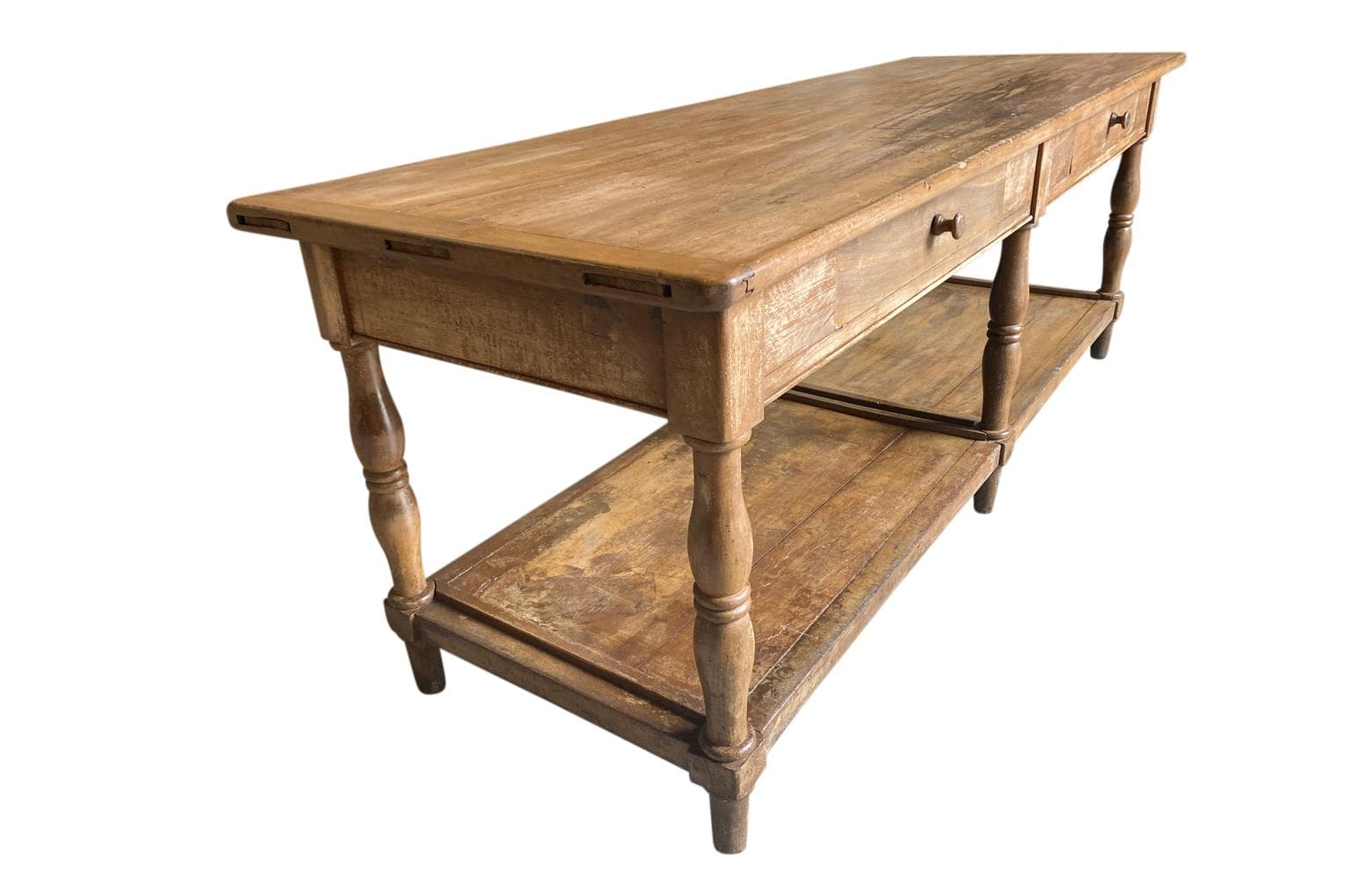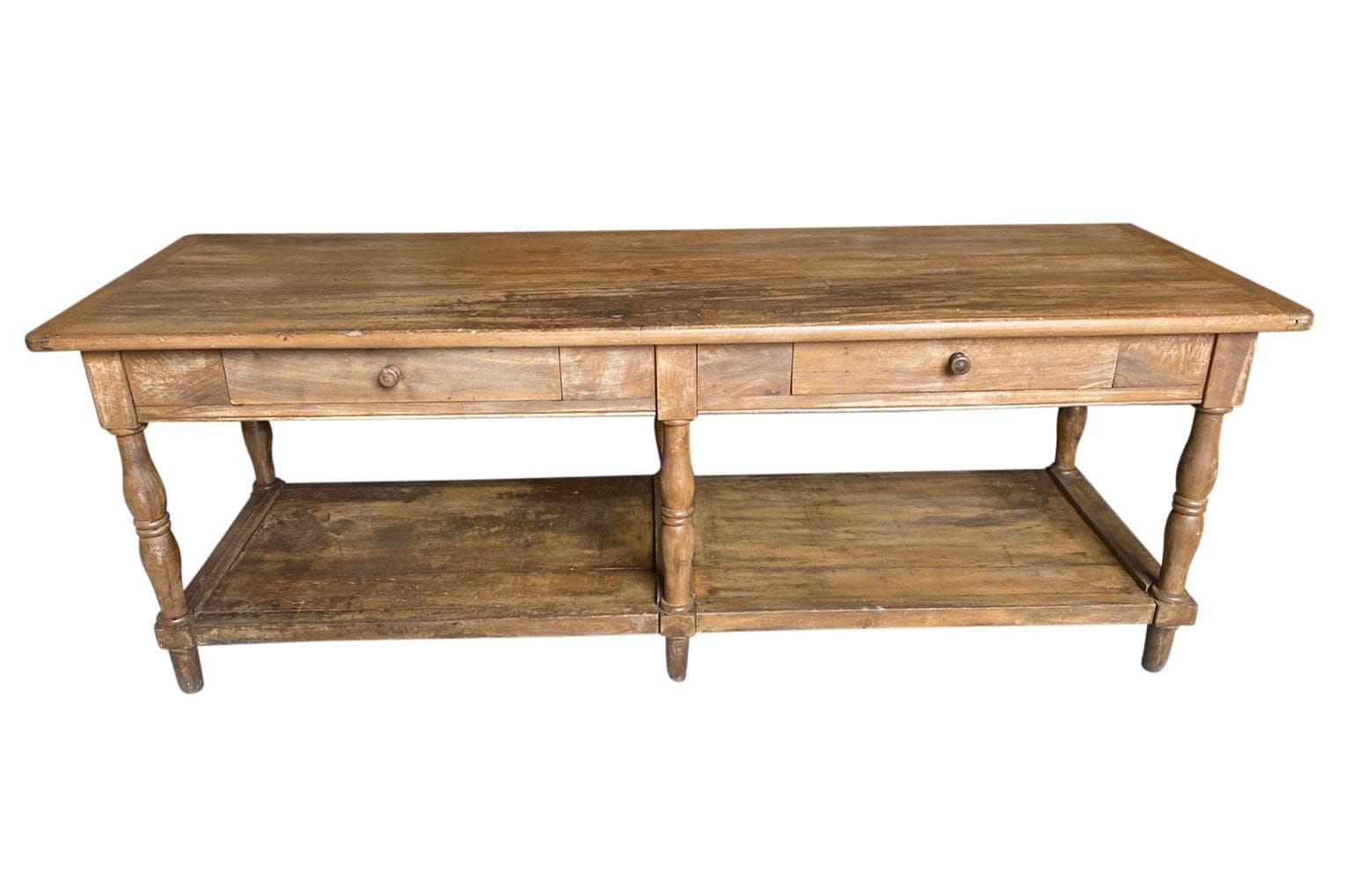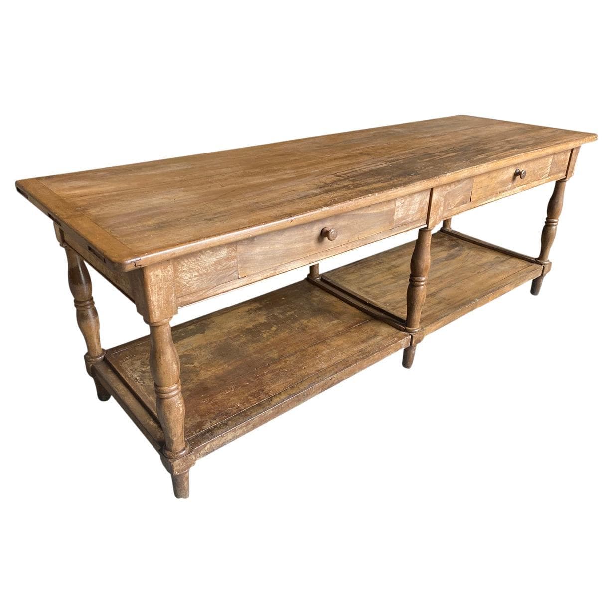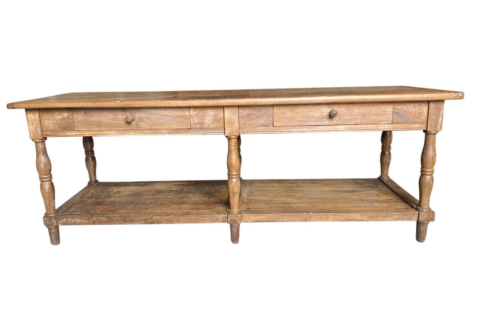 A very lovely 19th century Louis Philippe Draper Table from the South of France. Beautifully constructed from handsome walnut with 2 drawers and nicely tuned legs. Terrific as a kitchen island.