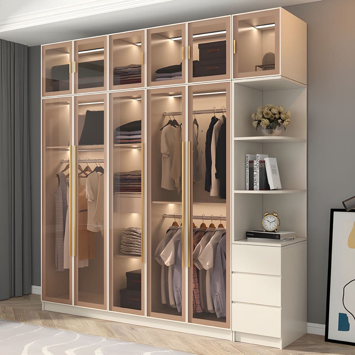 Glass and Wood Wardrobe Cabinet with Shelves Modern Wardrobe Closet - Armoires & Wardrobes 35"L x 35"W x 75"H