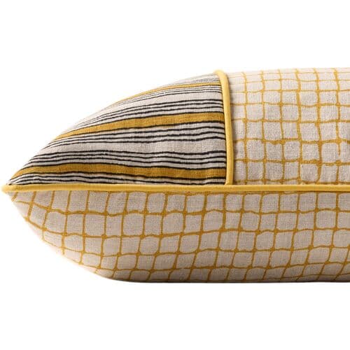 This throw pillow features a small-scale grid design that adds a classic, easy-to-pair pattern to living rooms, bedrooms, and more. The 12 x 27 lumbar pillow is woven in India of 100% linen.