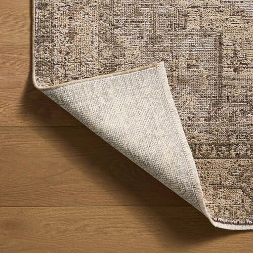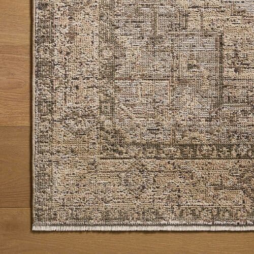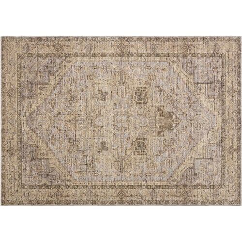 The Emeric Collection is a classically beautiful area rug with the low, worn-in pile of a treasured vintage textile. The rug's neutral palette uses contrasting tones with moments of distressing and saturation for visual depth that emphasizes the antique aesthetic. This collection is power-loomed of 100% polyester in Turkey, a durable, easy-to-clean construction that never sheds and is well-suited for busy living rooms, bedrooms, entryways, and more.