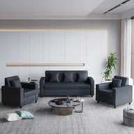 Jute-upholstered sofa set with foam filling and solid wood (plywood) frame. DIY basic assembly required. Comes with 1 year manufacturer warranty. Available in Dark Orange and Dark Grey finish. (Specifications include upholstery material: fabric; filling: foam; frame: solid wood/plywood.)