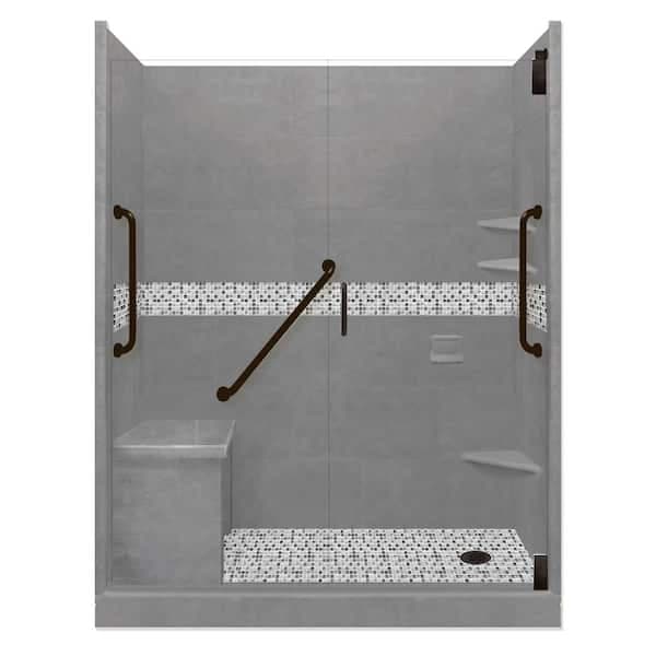 Del Mar Freedom Grand Hinged 36 in. x 60 in. x 80 in. Right Drain Alcove Shower Kit in Wet Cement and Black Pipe