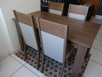 Transforme sua sala de jantar em um lugar muito mais aconchegante e bonito com o Conjunto Havana da Madesa. É o produto ideal para você que procura ganho de espaço no ambiente com conforto e design clássico. A mesa retangular acomoda perfeitamente 4 pessoas. Pode ser utilizada no centro da ambiente e assim aproveitando as pontas ou contra a parede para um maior ganho de espaço. As cadeiras são em MDF com encosto na coloração Crema e assento estofado. O material Sintético Bege possui um toque suave e se adapta bem a qualquer tipo de decoração. O acabamento amadeirado Rustic é em Pintura Poliéster de alta resistência, processo que consiste na aplicação de 7 camadas de proteção resistentes a álcool, água e calor. A pintura é ecológica, isenta de vapores que vão para a atmosfera.