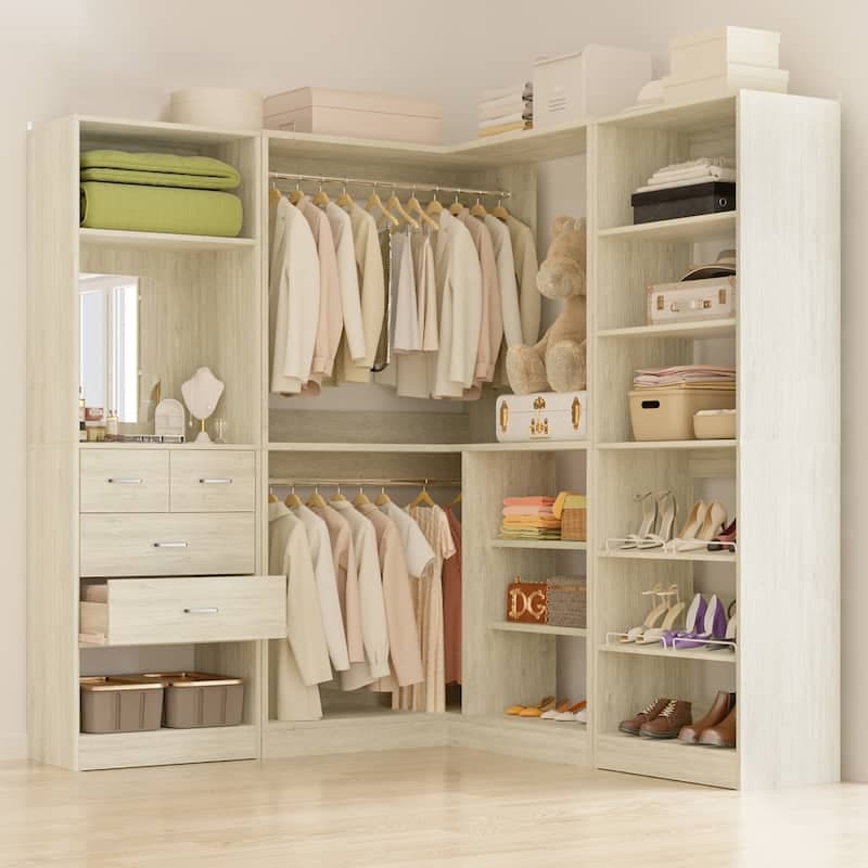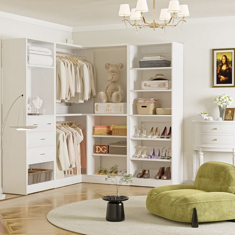 Cimly Set of 3 Corner Closet System with Drawers and Mirror, Multi-functional Closet Organizer with Shoe Racks