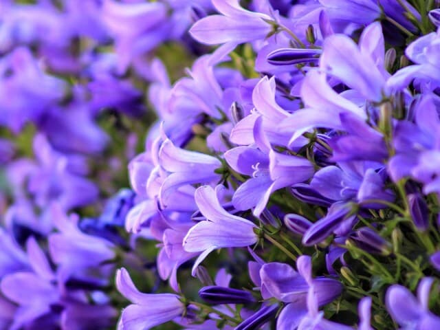 SIBERIAN BELLFLOWER A tough rockery plant bears massive sprays of violet starry flowers. Vigorous and fast growing, it is one of the easiest and long-flowering of all rockery plants, and able to stand almost complete drying out once established in a wall. Unlike many others it will self-seed into cracks making a fantastic display!