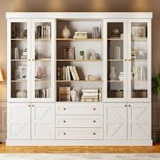 71" Tall Farmhouse Pantry Cabinet Large Storage Cabinet Glass Doors Adjustable Shelves 3 Drawer Wood Versatile Hutch Dining Room Living Room White (3-Piece)