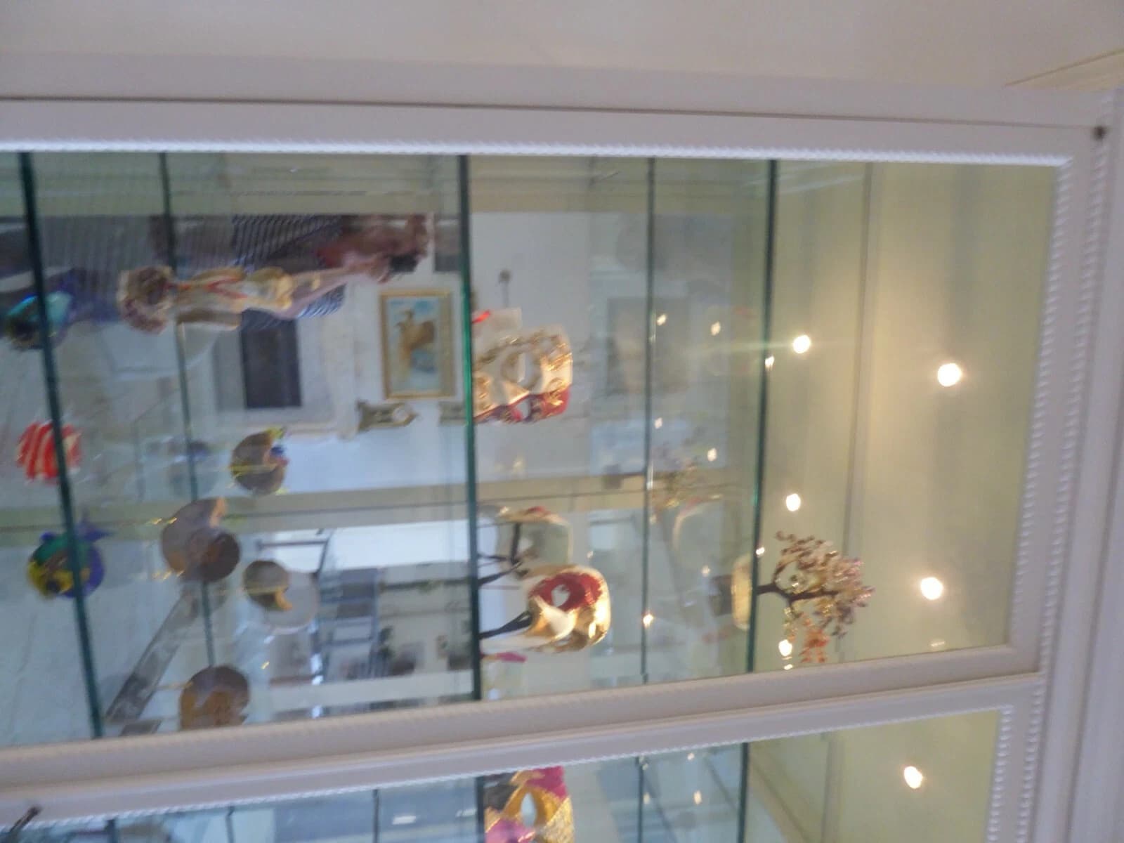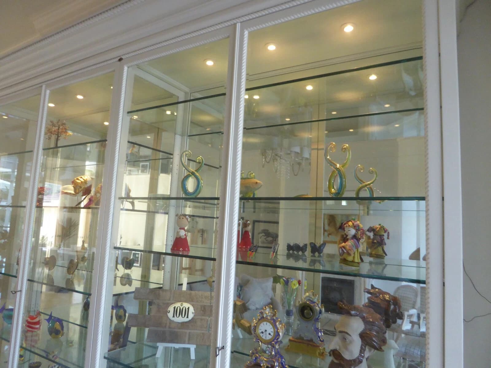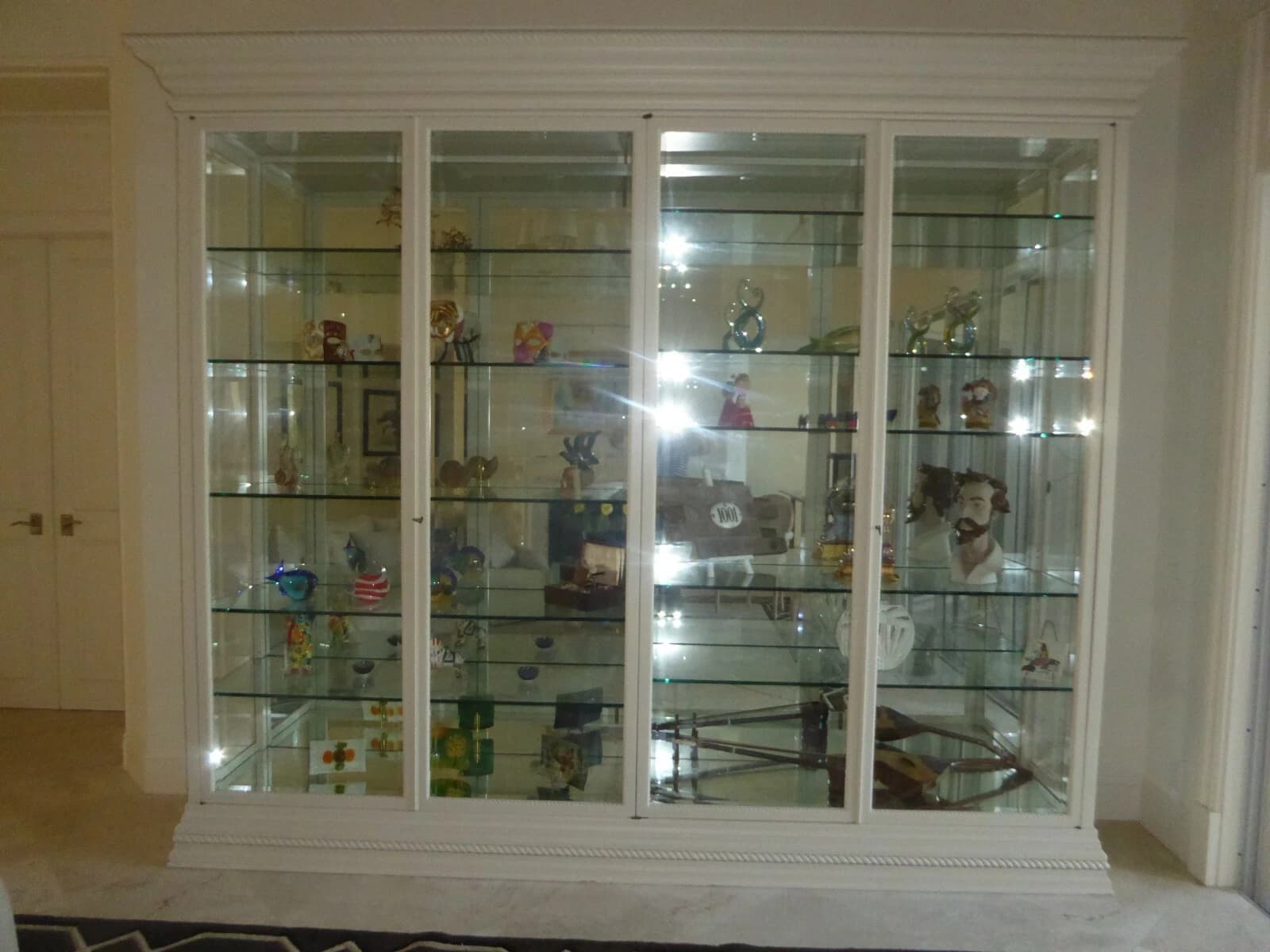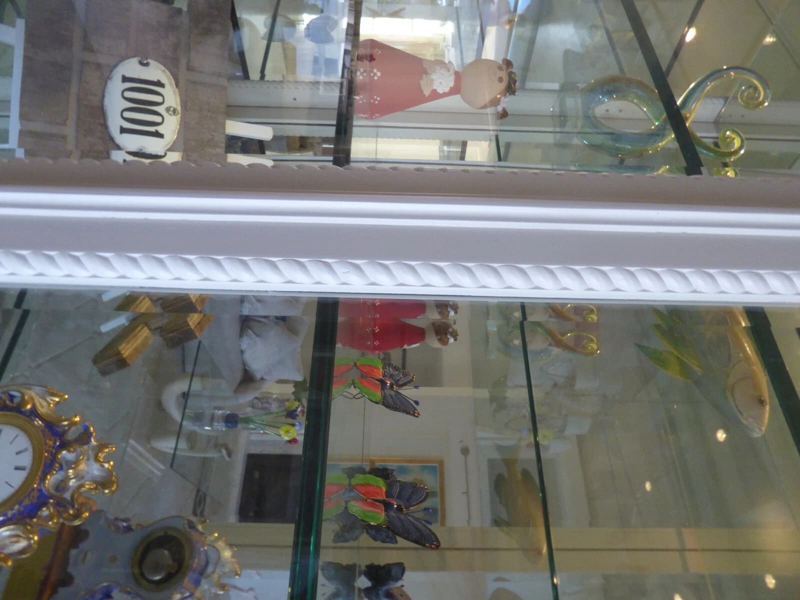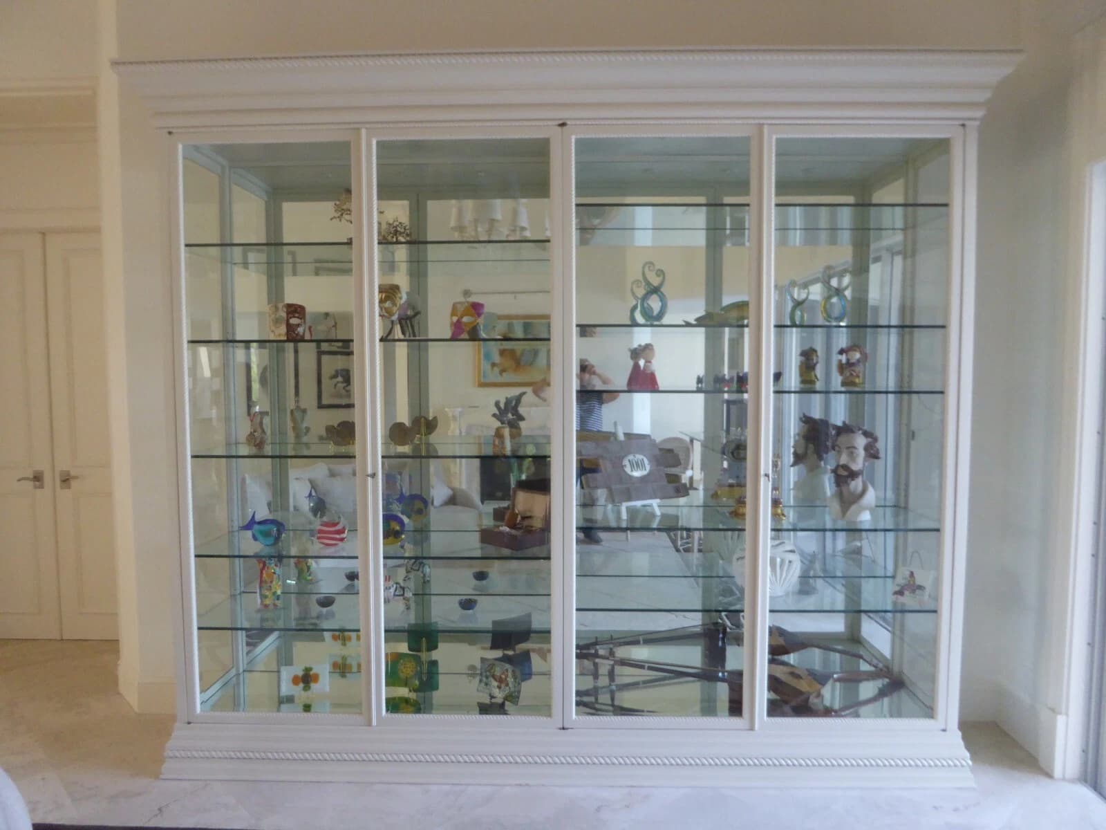 Seller listing for a vintage Italian custom-made vitrine. Item specifics provided by seller: Condition: Used; Material: Solid Wood; Color: Beige; Door Style: Glass; Number of Shelves: 10; Handmade: Yes; Item Weight: More Than 140 lb. Seller-provided item description section is empty in the listing.