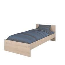 Eenpersoonsbed Shelby, gemaakt uit spaanplaat in Jackson eikdecor. Matras en lattenbodem niet inbegrepen. Het bed is een instapmodel voor jonge kinderen en past met zijn moderne kleur en handig formaat in veel slaapkamerinterieurs.
