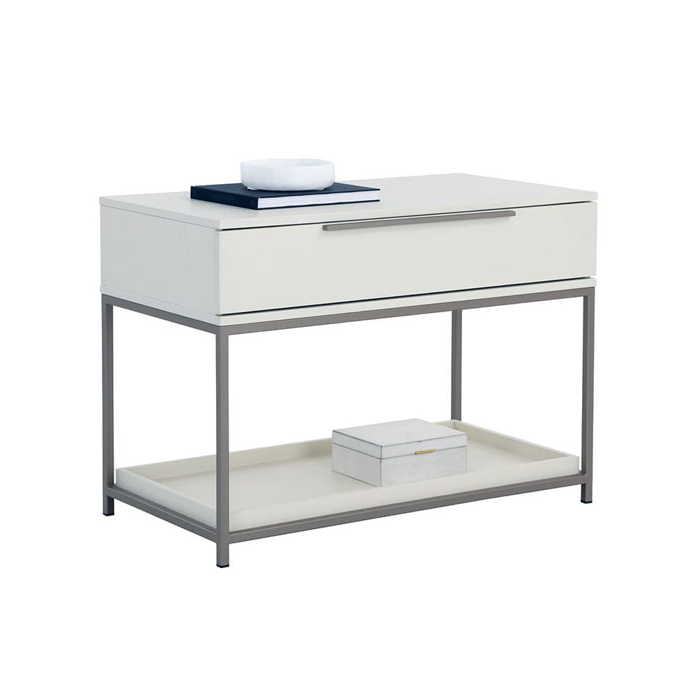 The most important place in the world – your home is at the heart of everything that Sunpan creates. Beautiful design and comfort are at their core and their designers search the globe for versatile pieces that are trend-forward and work well together with any style and in any room. Fusing art and science, a delicate balance of aesthetics, ergonomics, functionality, durability, and sustainability are a part of every Sunpan product making each piece truly timeless. Classic is always comfortable, and fresh and clean are a forever trendy in any place of sanctuary. Enjoy the Rebel Nightstand - Large - Champagne Gold - Cream in your home today! A modern nightstand designed to add a beautiful touch to the bedroom. Crafted from cream oak wood veneer with a large soft closing drawer and shelf for added storage. Brushed champagne gold iron hardware completes the look. As wood is an organic, porous material, these pieces will contain natural variation of texture and may also exhibit fine indentations and cracks. Wood pieces will also display a disparity of colour and grain, and visible knots and burls that add to the character of each piece.